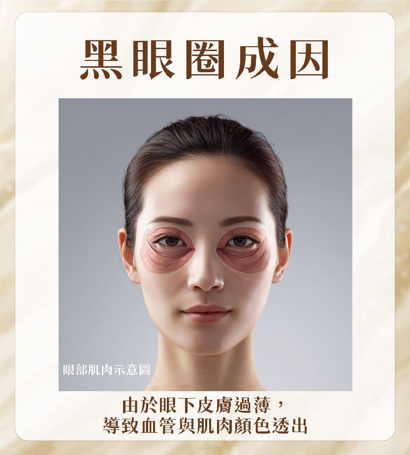 你是否常被問:「最近是不是熬夜?」其實,大多時候黑眼圈並非單純熬夜造成,而是眼下結構性的問題。眼下皮膚特別薄,血管與肌肉的暗沉顏色容易透出形成色差,再加上脂肪與膠原蛋白流失,就容易造成凹陷與陰影,看起來疲憊又顯老。