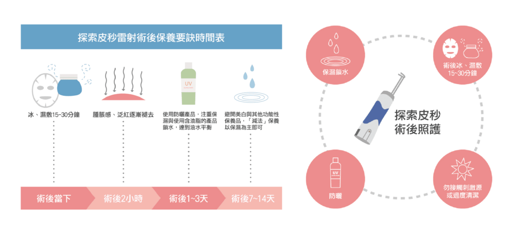 探索皮秒的恢復期相對短,通常術後紅腫約2至5天消退。在恢復過程中可視情況上妝,並選用溫和的保濕產品,搭配不油膩的防曬乳液,作為妝前保養,讓妝容更服貼自然。