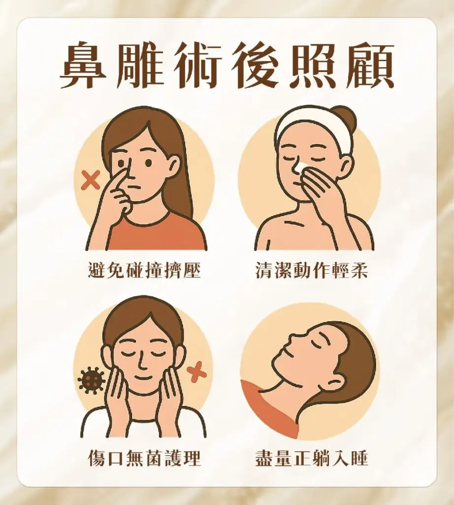 完成鼻雕後的頭幾天,雖然大多數人不會有明顯不適,但仍建議避免對鼻部施加壓力,像是趴睡、戴壓力大的眼鏡、揉捏或按摩鼻子,都可能影響線材穩定。一週內盡量以正面平躺入睡,避免側臉壓迫。若有局部輕微紅腫、緊繃或壓痛,多為正常修復過程,可依照醫師指示冰敷或使用消炎藥物輔助緩解。保持清潔、避免觸碰傷口區域,是確保線材穩定與鼻型維持的關鍵。
