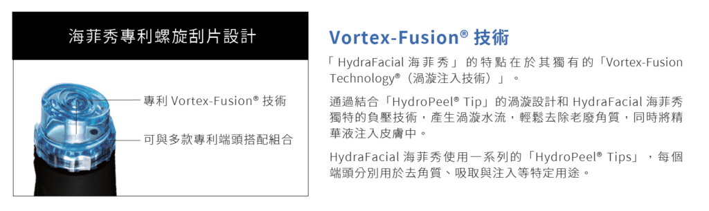 然而,在眾多水飛梭設備中,海菲秀被公認為最頂級的美國機種。海菲秀使用專利渦旋技術Vortex-Fusion Technology,利用負壓吸取角質髒污的同時,藉由渦漩注入技術同步將營養成份注入肌膚,使清潔與保養效果更深層。
